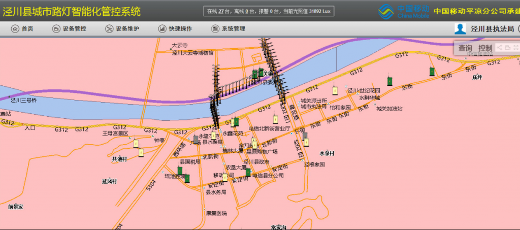 该项目是在和华亭移动合作的基础上,又成功复制单灯项目的实施案例,实现全城通过光照度开关灯控制,安装GPS北斗校时、安装GIS地图并在软件平台实时显示数据。
